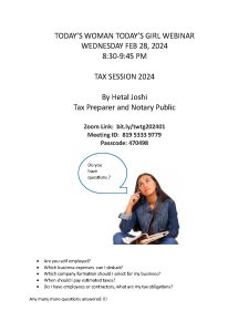 Today’s Woman Today’s Girl is excited to continue our financial education series with our next session on understanding the complexity of *TAX*
